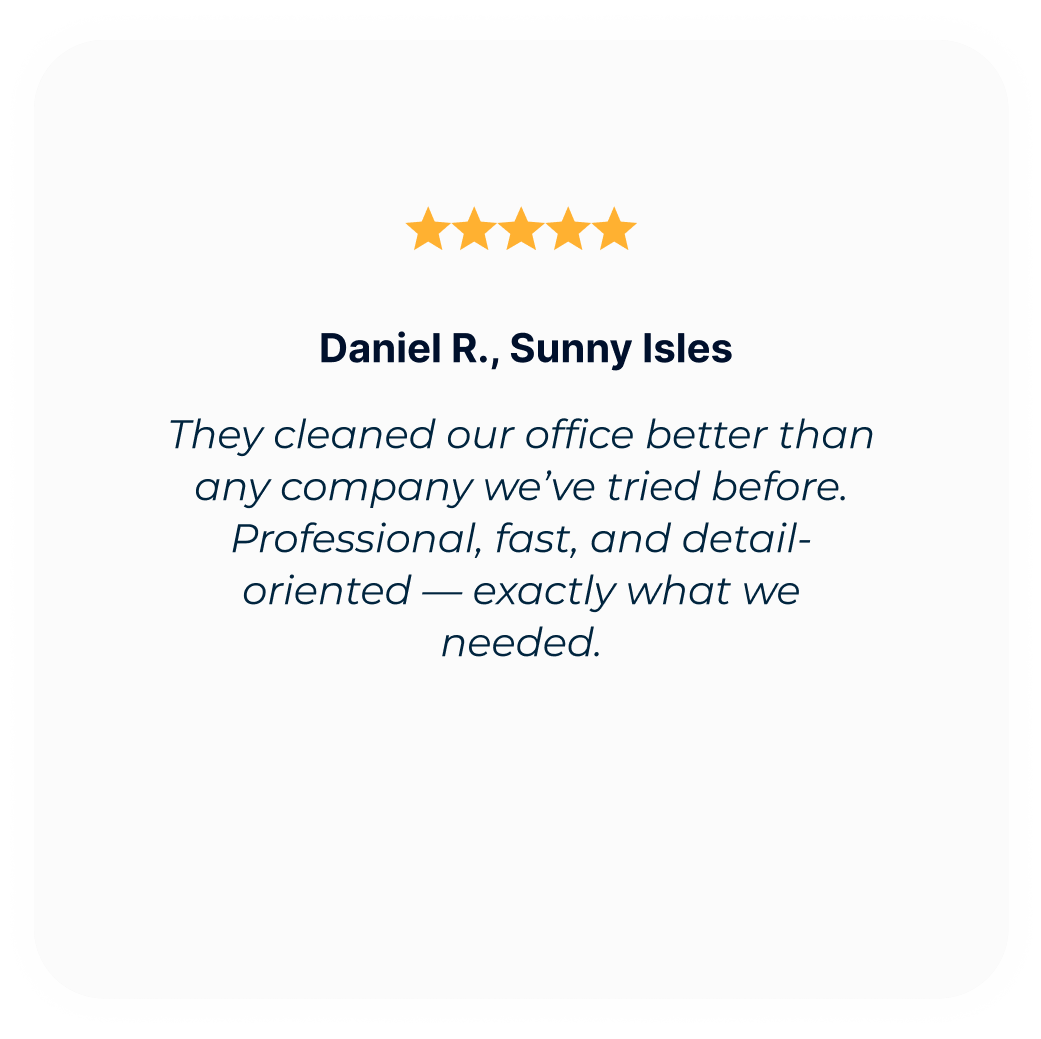 With more than 7 service areas, including Miami, Miami Beach, Sunny Isles, Golden Beach, Hallandale, and Dania Beach, our team is dedicated to bringing spotless results wherever you are.